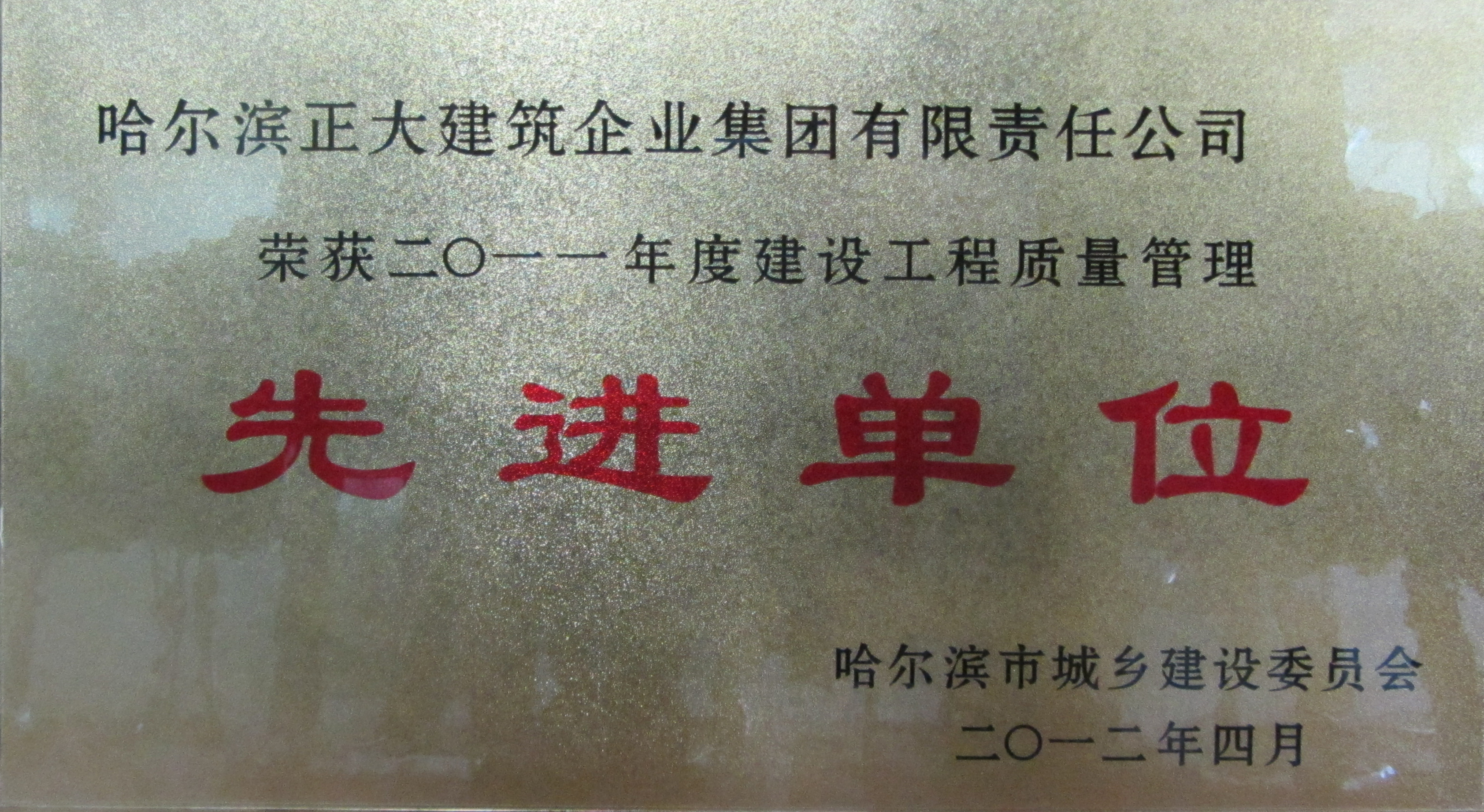 公司成立至今,先后被評為全國優秀施工企業、全國用戶滿意施工企業,全國首批建筑業誠信施工企業,全國“安康杯”競賽優勝企業,全國工程建設質量管理優秀企業、中國建設系統企業信用信譽AAA級單位,并多次榮獲省、市“先進單位”、“優秀單位”、“重合同守信用單位”、“黑龍江省優秀施工企業”、“黑龍江省用戶滿意施工企業”等光榮稱號。并連續獲得哈爾濱市質量管理先進單位、黑龍江省質量管理先進企業、黑龍江省質量管理獎、黑龍江省“安康杯”優勝企業等榮譽。并在建筑施工現場環保管理上創造了一項“中國企業新記錄”。